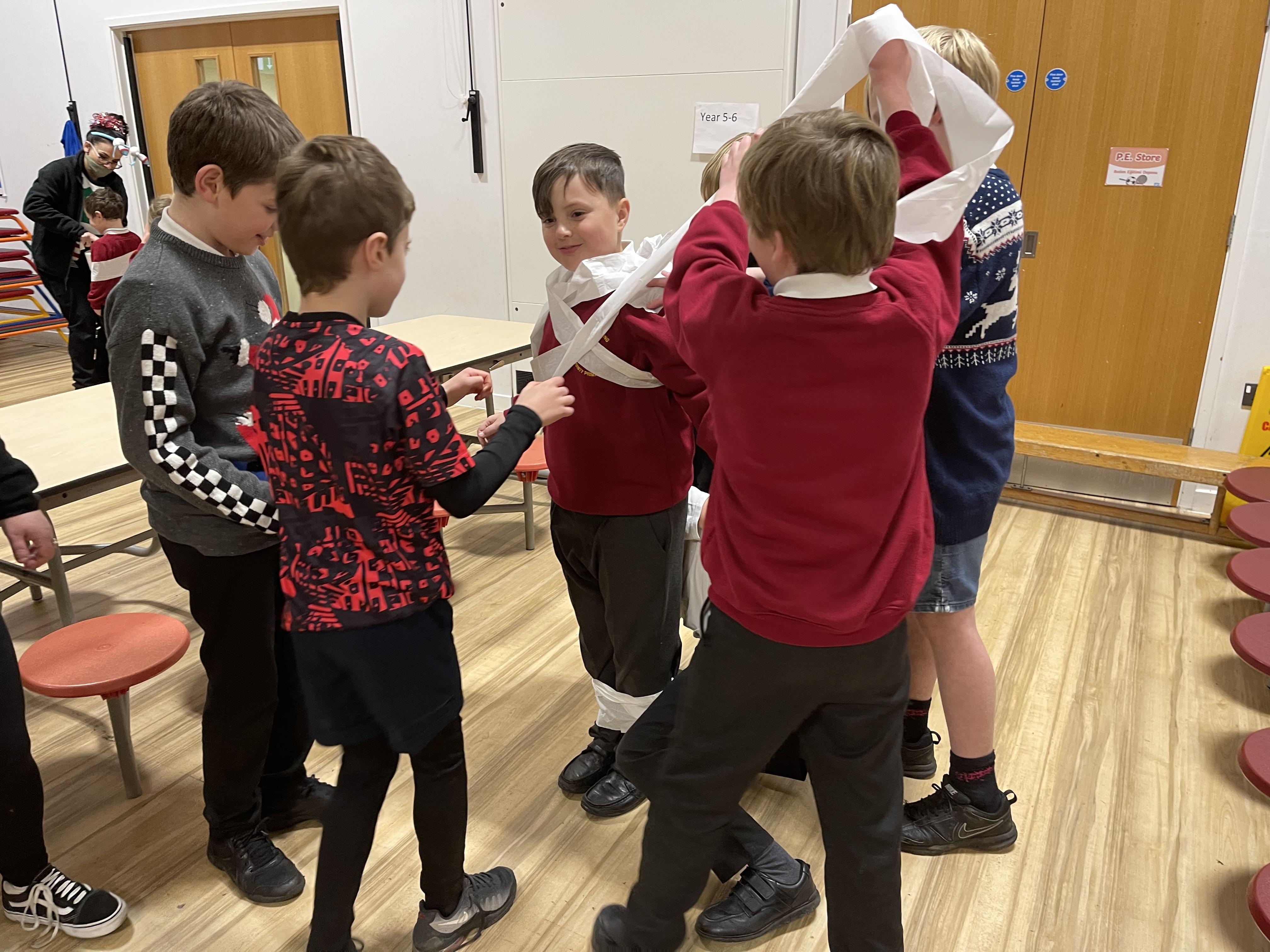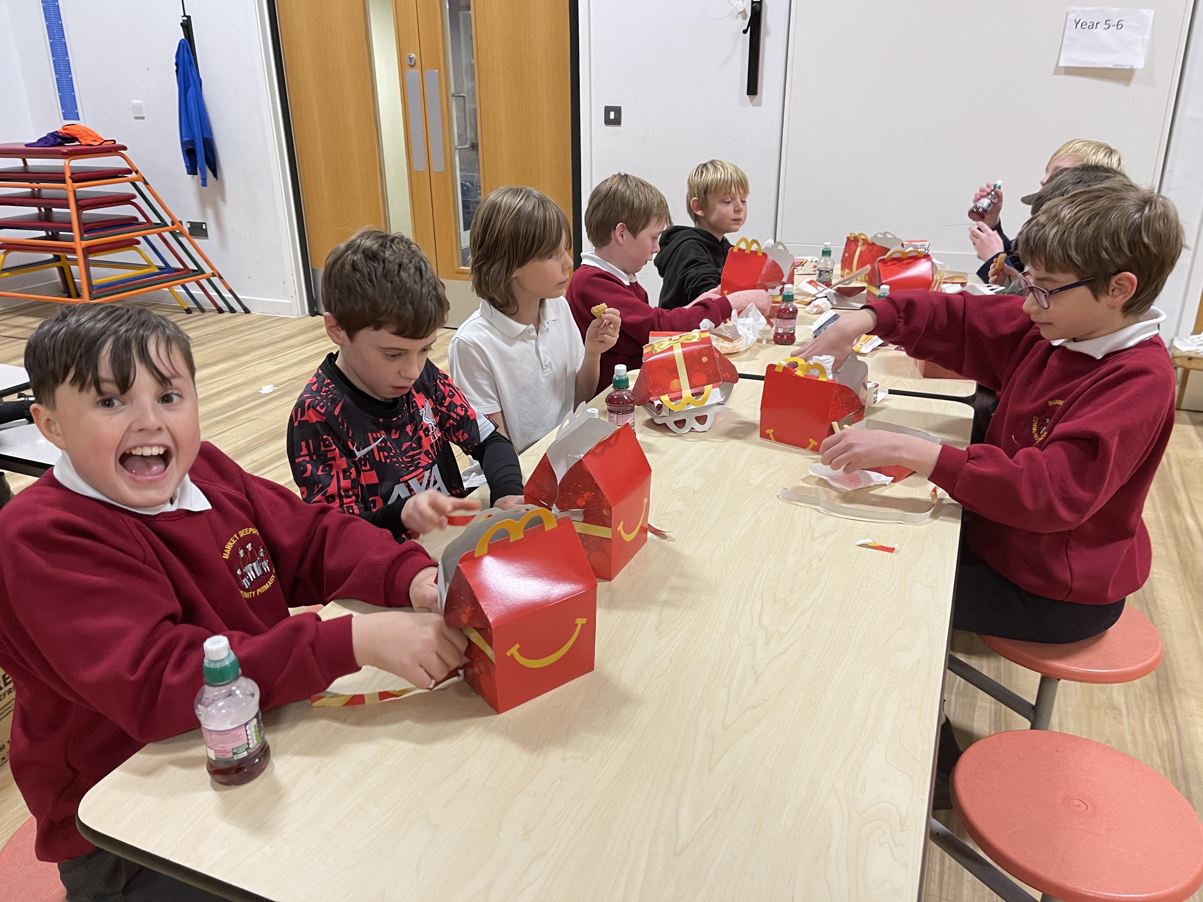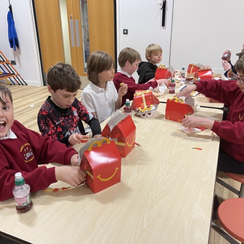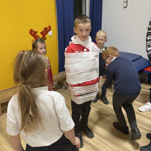 We have managed to use the tables to create bubbles so that we could safely hold our Christmas party this year!  Team games, dancing games and our silly snowman competition and visiting Father Christmas was fun!  We finished off with MacDonalds meals, Rainbow Ice Cream Cones and presents!